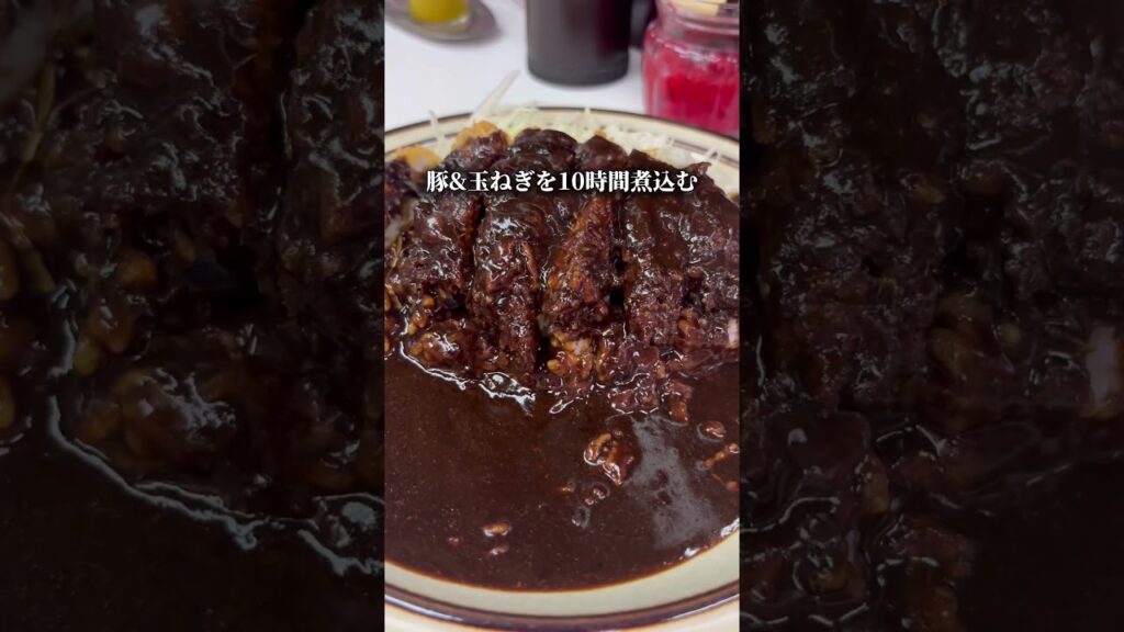 黒いカツカレーは10種のスパイスに豚と玉ねぎを10時間煮込み、微かな酸味と苦味、中辛でスパイシー注文ごとにあげるカツは