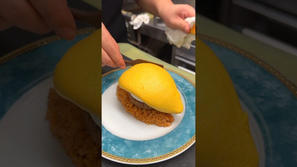 ハンバーグ&カマンベールを丸ごと挟んだオムライスを食べられるお店。