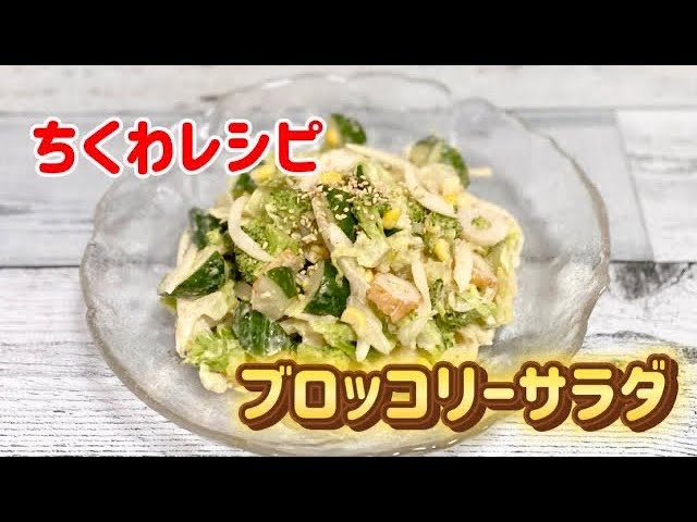 簡単今日のサラダ/ちくわ/ブロッコリー/きゅうり/玉ねぎ/レタス/コーン/節約レシピ/朝ごはん