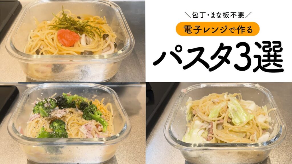 【包丁・まな板不要】電子レンジで作るパスタ3選 #料理 #簡単レシピ #昼ご飯 #cooking #おうちごはん #food #自炊 #パスタ #スパゲティ #明太子 #ツナ